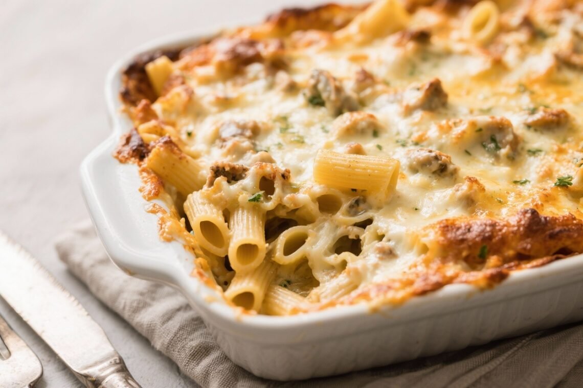 This creamy pasta bake tastes like pure comfort food but packs in real, steady energy thanks to smart, high-protein swaps. It’s the kind of weeknight dinner that makes everyone happy—cheesy top, velvety sauce, and a golden crust. You won’t need fancy ingredients, and it’s easy to prep ahead. The best part? It’s secretly balanced, nourishing, and filling, without feeling “healthy.” Leftovers reheat like a dream, so you’re set for lunch tomorrow too. What Makes This Recipe So Good High protein without the fuss: Greek yogurt, cottage cheese, and lean chicken or turkey bump up protein quietly, with no chalky texture…